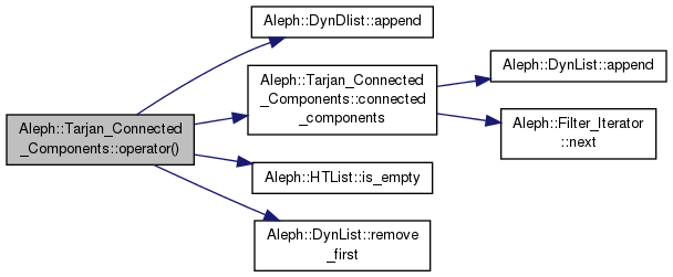 Hace referencia a Aleph::DynDlist< T >::append(), Aleph::Tarjan_Connected_Components< GT, SA >::connected_components(), Aleph::HTList::is_empty() y Aleph::DynList< T >::remove_first().