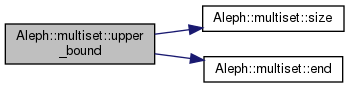 upper_bound(value) busca el elemento value en el multi-conjunto. Si éste es encontrado, entonces se retorna un iterador posicionado sobre el último elemento del multi-conjunto con el valor en cuestión; de lo contrario, se retorna un iterador desbordado al final del conjunto.