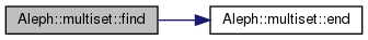 find(value) busca el elemento value en el multi-conjunto. Si éste es encontrado, entonces se retorna un iterador posicionado sobre el primer elemento del multi-conjunto con el valor en cuestión; de lo contrario, se retorna un iterador al elemento que antecederÃa a value si éste fuese insertado. Nótese que en este caso el elemento antecesor es el último entre los repetidos.